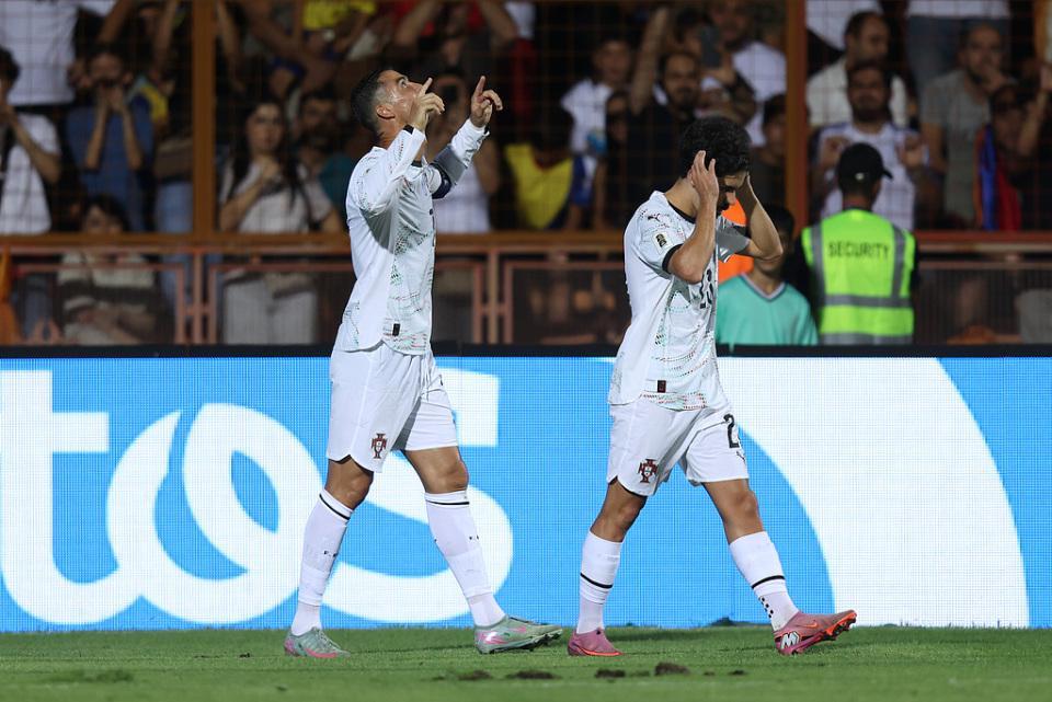 北京时间9月7日凌晨,世预赛欧洲区F组第5轮首轮一场焦点战打响,葡萄牙做客挑战亚美尼亚。而本场比赛40岁的葡萄牙巨星C罗梅开二度,并且打进精彩的远射世界波,依然宝刀不老。